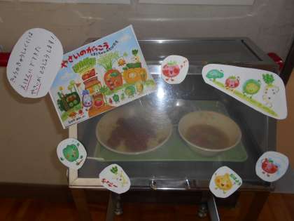 今日は八王子読書の日でした。毎年、図書コラボと題して、絵本に出てきたメニューが給食に登場します。今年は、「やさいのがっこう」シリーズからトマトが入ったカレーが登場しました。