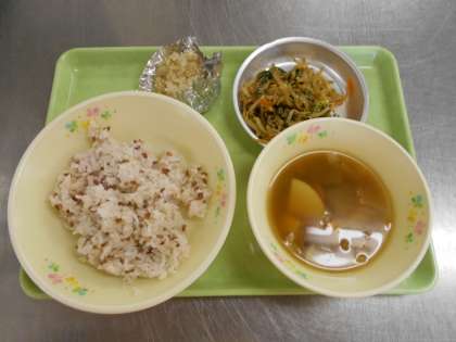 10月29日の給食 公開日 2020/10/29 更新日 2020/10/29 給食室から 今日の献立は、古代ごはん、ミニいがむし、ごまあえ、のっぺい汁、牛乳でした。 いがむしは、いがいがしているものを蒸しているのでいがむしです。素朴な味なのですが、人気でした。