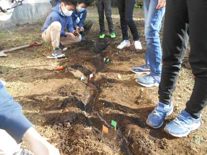 山と平野と川をつくり、川の大きなカーブの内側と外側では、流れる水のはたらきに違いがあるかを観察しました。
