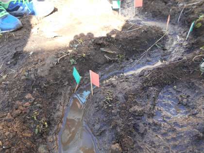 最初はただの泥遊びや砂遊びのようでしたが、いざ水を流してみると、川の流れにはいろいろなはたらきがあることが見えて、びっくりしていました。