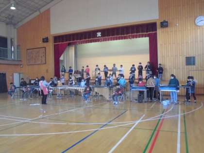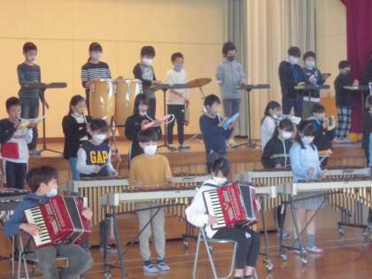 5年生 音楽 体育館練習 公開日 2020/12/04 更新日 2020/12/04 今日の出来事 今日の6時間目は、学年合同で音楽の授業を体育館で行いました。 音楽室で合わせたのとは、全然違う感覚だったと子供たちは言っていました。 サンバ・ブラジルはノリノリで合奏していました。 月曜日の保護者会前の音楽で発表します。楽しみにしてください。 5年 授業