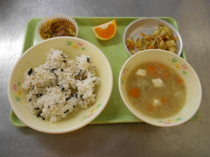 12月10日の給食 公開日 2020/12/10 更新日 2020/12/10 給食室から 今日の献立は、わかめごはん、卵焼き、みそけんちん、野菜のおかかあえ、はれひめ、牛乳でした。 今日は五つの輪で体力アップ献立でした。