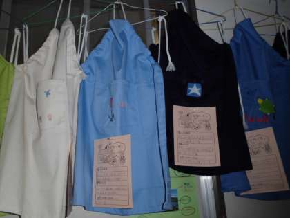 5年生 家庭科 エプロン作り その4 公開日 2020/12/16 更新日 2020/12/16 今日の出来事 2組の作品の続きです。 ポケットにいろいろな模様があり、素敵な作品になりました。 5年 授業