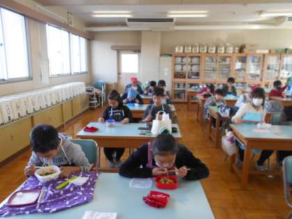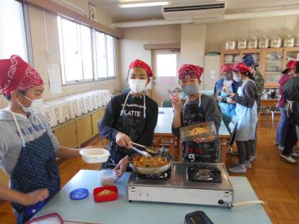 家庭科の「まかせてね、今日の食事」で、炒める調理に挑戦しました。感染予防に努めて、安全に調理実習ができました。1組も2組も美味しくできましたね。