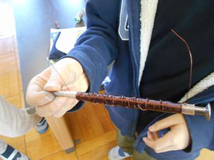 今日は、学習のまとめとして、実際に「電磁石(コイル)」と「簡易モーター」を手作りしました。
