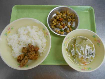 2月12日の給食 公開日 2021/02/12 更新日 2021/02/12 給食室から 今日の献立は、ごはん、白身魚の香り揚げ、五目煮豆、鶏汁、牛乳でした。 白身魚の香り揚げは子供達に人気のメニューです。角切りに切った魚にしょうが、にんにく、しょうゆで下味をつけ、米粉で揚げています。