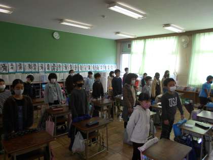 ありがとう 公開日 2021/03/02 更新日 2021/03/02 今日の出来事 今朝の放送音楽集会は「ありがとうの歌」を教室で歌いました。 1回目は全校で歌い、2回目は6年生は着席して、1〜5年生が6年生に向けて自分たちの教室から歌いました。 歌い終わったあと、4階の6年生の教室から万雷の拍手が聞こえてきました。 ありがとうの言葉がそっと6年生を包んだのかも知れません。 校長より 授業 研究・研修 生活 行事 給食