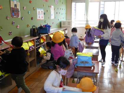 ランドセルや手さげを持って、少し大変そうでしたが、6年生に手伝ってもらいながら、朝の準備ができました。