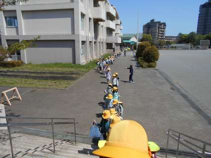 帰りは、下校グループごとにまとまって、帰っていきました。