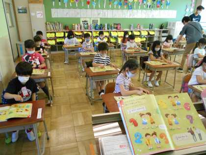 曲を聴きながら 公開日 2021/05/25 更新日 2021/05/25 今日の出来事 1校時、1年1組の音楽。ワン、ツー、スリー・・・の歌詞に合わせて指で追っていきます。次第にテンポが速くなって・・・。 校長より 授業 研究・研修 生活 行事 給食