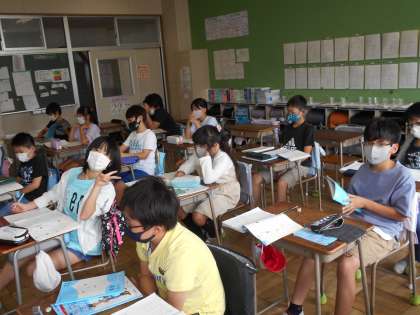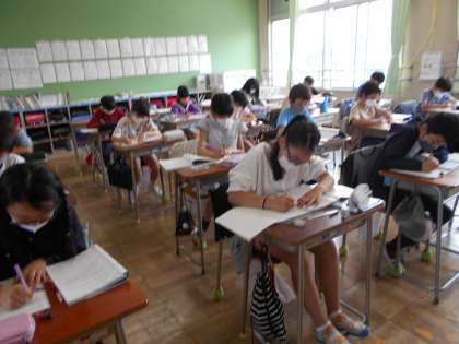 小数×小数 公開日 2021/05/26 更新日 2021/05/26 今日の出来事 2校時、5年生算数。3つのクラスに分かれて、小数×小数の筆算を学んでいます。どのクラスも落ち着いた学習態度で、自分の考え方を発表したり、練習問題に取り組んだりしています。この後は小数の割り算に進んでいきます。 校長より 授業 研究・研修 生活 行事 給食