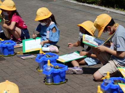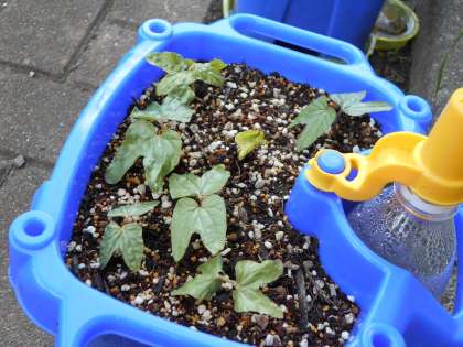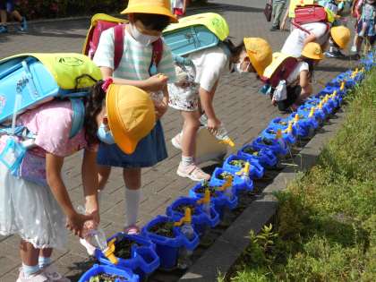 アサガオぐんぐん成長中! 公開日 2021/06/01 更新日 2021/06/01 今日の出来事 24日(月)に種を蒔いたアサガオが、金曜日頃から芽を出し始めました。 毎日せっせと水やりをし、声をかけながらお世話をしてきたおかげです。 小さな葉っぱを広げて、元気に育っています。 今週は、生活科の時間に、観察カードを書きました。 これからも、お世話と観察を続けていきます。 校長より 1年 授業 研究・研修 生活 行事 給食