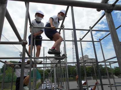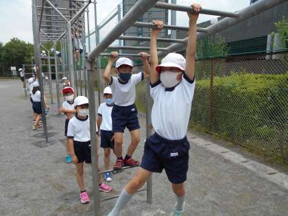 登ったり渡ったり 公開日 2021/06/07 更新日 2021/06/07 今日の出来事 4校時、2年2組の体育。雲梯、登り棒、ジャングルジム、鉄棒に分かれてチャレンジ。逆さになったり、渡り歩いたりしていろいろな動きの感覚を身につけていきます。 校長より 授業 研究・研修 生活 行事 給食