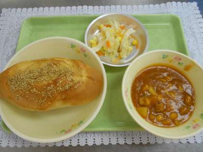 6月8日の給食 公開日 2021/06/08 更新日 2021/06/08 給食室から 今日の献立は、セサミフランス、ポークビーンズ、コールスロー、牛乳でした。 セサミフランスは、フランスパンに、ごま、溶かしバター、さとうを混ぜてたものを塗って焼きました。子供達もよく食べていました。