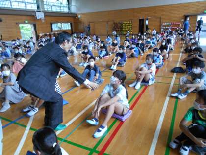 いじめ防止授業 公開日 2021/06/08 更新日 2021/06/08 今日の出来事 6校時、4・5・6年生が体育館に集まりました。「いじめから子供を守ろうネットワーク」から講師の先生をお迎えして、いじめ防止の授業です。様々な事例を紹介していただき、いじめられたらどうする?いじめのない学校にするには?・・・児童もたくさん意見を発表しました。 校長より 授業 研究・研修 生活 行事 給食