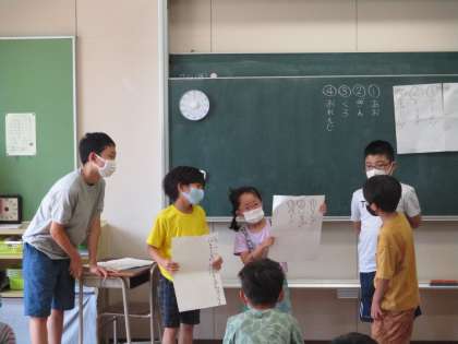 全体国語の時間に,班対抗のクイズ大会を行いました。
