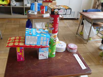 算数いろいろなかたち 公開日 2021/06/10 更新日 2021/06/10 今日の出来事 算数で「いろいろなかたち」の学習をしています。 お菓子などの空き箱集めのご協力、ありがとうございました。 形の特徴を捉えて上手に組み合わせ、キリン・ロボット・車・タワー等を作ってみました。友達の箱と組み合わせて、大きな橋を作った子もいました。 遊んでいるようですが、五感をフルに使って学んでいます! 校長より 1年 授業 研究・研修 生活 行事 給食