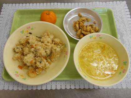 6月10日の給食 公開日 2021/06/10 更新日 2021/06/10 給食室から 今日の献立は、えびチャーハン、鶏肉と大豆の炒め物、中華風玉子とコーンのスープ、冷凍みかん、牛乳でした。 愛宕小の子供達は混ぜご飯が好きな子が多い印象があります。今日もえびチャーハンに大喜びしていました。えびは生のえびを使用したのでプリプリの食感を楽しめたのではと思います。