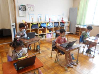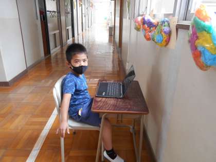明日は持ち帰って11時10分から各家庭でオンライン授業の試行です。