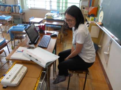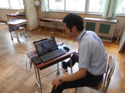 今日は2時間授業を受けたのち、学習端末をもって下校。4校時に当たる時間にオンライン授業の試行を行いました。