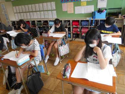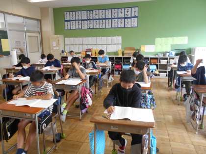 今年度、本校は文科省の全国学力学習状況調査の経年変化調査の対象校となっています。2校時、6年生が問題に取り組んでいます。保護者の皆さまにもご協力いただくアンケートがあります。本日持ち帰りますので、ご提出をお願いします。