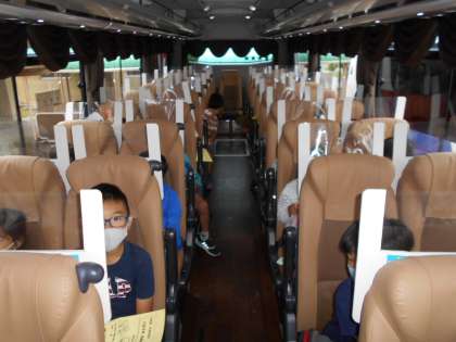 朝のうちは天気が心配でしたが、無事に見学をすることができました。感染症対策もばっちりです!