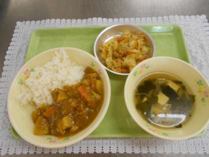6月22日の給食 公開日 2021/06/23 更新日 2021/06/23 給食室から 今日の献立は、八王子産ズッキーニのカレーライス、じゃこサラダ、わかめと豆腐のスープ、牛乳でした。 今日は八王子市小比企町と石川町でとれたズッキーニを使用しました。緑と黄色のズッキーニを使用し、夏らしいカレーになりました。市内の直売所では8月から9月にたくさん並びます。今日はほかにも市内産の野菜としてじゃがいも、たまねぎ、にんにく、キャベツを使用しました。