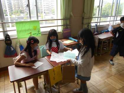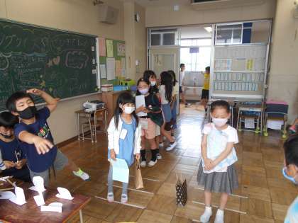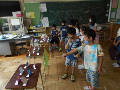 3年2組は「シューティング クイズ屋」ゴム鉄砲の的当ては近距離でも意外と難しい?