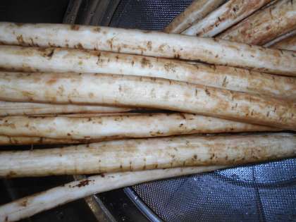 今日は立派なごぼうが入ってきました。写真だとわかりにくいのですが、直径3cm、長さ1mくらいの大きなごぼうでした。沢煮椀に入れたのですが、ごぼう独特の風味が沢煮椀の味を引き立て、とてもおいしくできました。