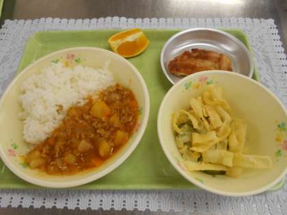 今日はブラジルの料理でした。今日は3年生を対象に、市内の農家さんが学校へ来て農家の話をしてくださいました。給食でも八王子産の野菜をたくさん使用しています。たくさん食べてもらいたいと思いました。