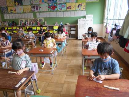ひきざん 公開日 2021/07/05 更新日 2021/07/05 今日の出来事 3校時、1年1組算数。コアラが7頭、うち4頭がオス、ではメスは何頭? ブロック操作で確認した後は、式を書けるようにしていきます。 校長より 授業 研究・研修 生活 行事 給食