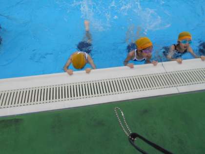 2年生は今年から大きいプールを使います。浅いところを使ってバタ足など練習をしました。