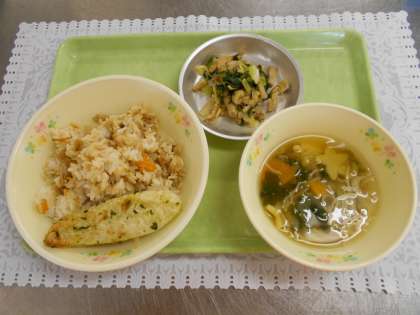 7月7日の給食 公開日 2021/07/07 更新日 2021/07/07 給食室から 今日の献立は、ツナそぼろちらし、ささかまぼこの翡翠焼き、野菜の彩りあえ、七夕汁、牛乳でした。 今日は七夕献立でした。七夕汁には星形のかまぼこが入っていました。また、笹の葉に見立てたささかまぼこの翡翠焼きを提供しました。1,2年生ととちのみさんの廊下には七夕かざりが飾られていました。