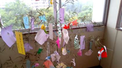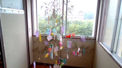 竹を近隣の方からいただきました。その竹に短冊を付け、飾りつけし、みんなの願いが叶いますように。