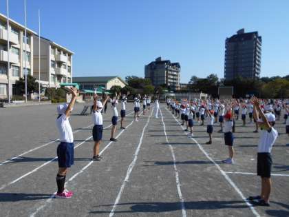 ラジオ体操集会 公開日 2021/10/07 更新日 2021/10/07 今日の出来事 ラジオ体操集会が今年も運動会に向けて行われました。ラジオ体操のプロに毎年基本からしっかりと教えていただいています。回を重ねるごとに子供たちの体操の姿が、きれいになっていく様子が分かります。 校長より 授業 研究・研修 生活 行事 給食