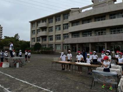 運動会全体練習 公開日 2021/10/12 更新日 2021/10/12 今日の出来事 1時間目、小雨模様でしたので内容を短縮して開閉会式の練習を実施しました。進行の係の子たちは緊張の面持ちでした。当日をお楽しみに。 YouTubeの配信は機器の関係で第3・4コーナーの方向を俯瞰する形での配信となります。全体の雰囲気を感じていただけたらと思います。 校長より 授業 研究・研修 生活 行事 給食