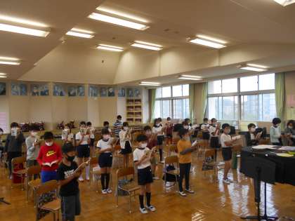 担当する楽器は 公開日 2021/10/13 更新日 2021/10/13 今日の出来事 4年生の音楽。「茶色の小瓶」の合奏に取り組むため、楽器を決めています。希望者が重なったところは、オーディションを行いました。太鼓が人気のようです。中には他の人に譲ってあげる人も。 校長より 授業 研究・研修 生活 行事 給食