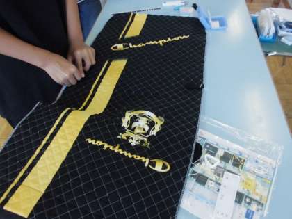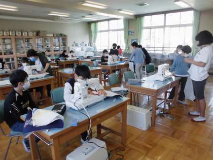 6年生は、家庭科でナップザックを作っています。
