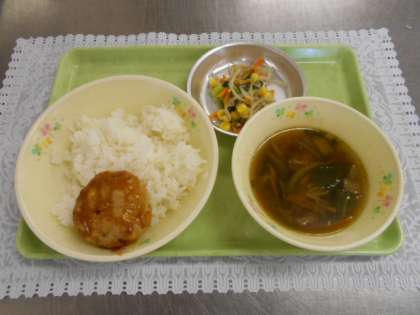 11月10日の給食 公開日 2021/11/10 更新日 2021/11/10 給食室から 今日の献立は、ごはん、蓮根ハンバーグ、青菜のソテー、きのこスープ、牛乳でした。 今日は手作りのれんこんハンバーグでした。てりやきソースをかけました。給食のハンバーグには豆腐を入れることが多いのですが、あっさりしてヘルシーにできました。子供たちも喜んでいました。