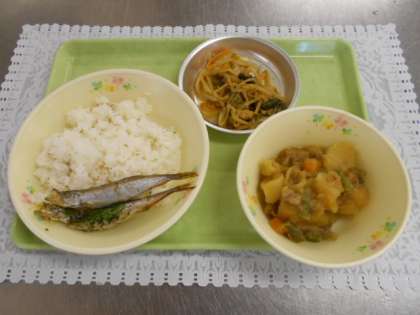 11月11日の給食 公開日 2021/11/12 更新日 2021/11/12 給食室から 今日の献立は、ごはん、ししゃもの磯辺焼き、肉じゃが、煮浸し、牛乳でした。 今日は和食の献立でした。今月は八王子産の野菜を多く使っています。 今日はにんじん、こまつな、白菜が八王子産でした。 給食を通して、市内の生産業者さんを応援していきたいと思います。