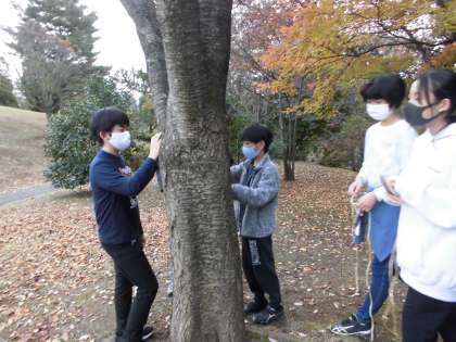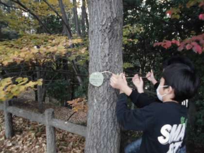 6年生 樹木プレートの取り付け その1 公開日 2021/11/16 更新日 2021/11/16 今日の出来事 前回取材に行って作成した樹木プレートを上柚木公園に取り付けに行きました。 上柚木公園の方々に協力していただき、それぞれ担当した木に取り付けました。 6年 授業 行事