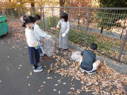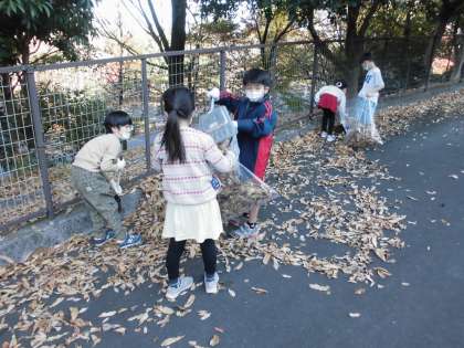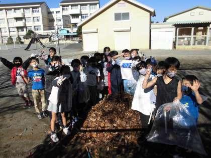 2年 落ち葉拾い 公開日 2021/11/26 更新日 2021/11/26 今日の出来事 天候に恵まれ、いい陽気の中落ち葉拾いを行いました。たくさんの葉をた〜くさん集めることができました。「やってもやっても出てくる!」「かさかさ気持ちいい〜」など実際に葉っぱに触れて、みんなで協力して行ったことに色々と感想をもつことができました。 2年 授業 生活 行事