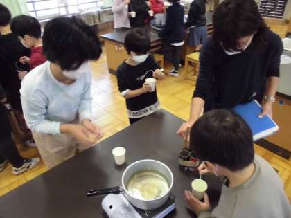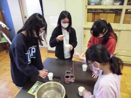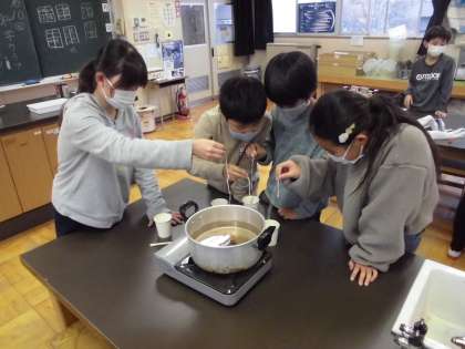 科学クラブ キャンドルづくり 公開日 2021/12/07 更新日 2021/12/07 今日の出来事 ろうを溶かして、クレヨンを削って色を付け、いざ! 糸にろうを重ねていきます。思い思いの色や形に・・・ 来週はこの続きです。 4年 5年 6年 授業 生活 行事 給食