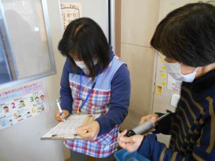空気検査 公開日 2022/02/16 更新日 2022/02/16 今日の出来事 今日は学校薬剤師さんによる教室の空気検査を行いました。二酸化炭素濃度を1000ppm以内に抑えるよう、(寒いですが)換気を徹底しています。計測の結果、どの教室も500〜800ppmの結果でした。 校長より 授業 研究・研修 生活 行事 給食