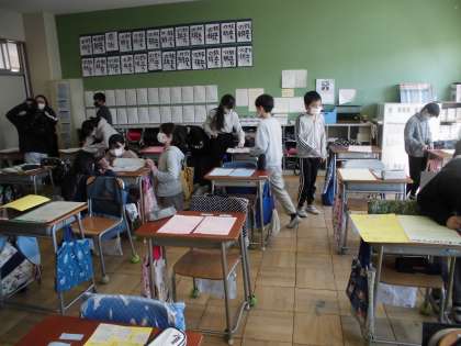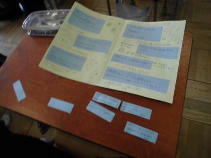 「密」にならないように距離をとりながら、お互いに評価し合いました。