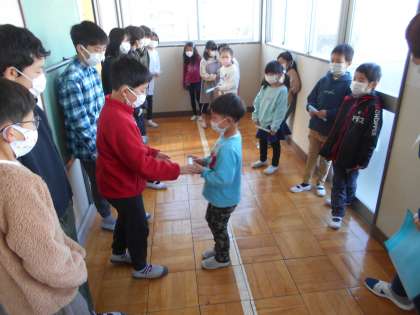 今までありがとう 公開日 2022/02/24 更新日 2022/02/24 今日の出来事 今朝の愛宕タイム。1年生が書いたお礼の手紙を6年生に渡しました。「一緒に遊んでくれてありがとう」 来週の月曜日が最後の1年生と6年生のみんな友達班活動になります。 校長より 授業 研究・研修 生活 行事 給食