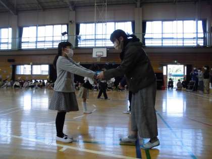 6年生からは、各学年にメッセージと自分たちで作った雑巾のプレゼントをしました。