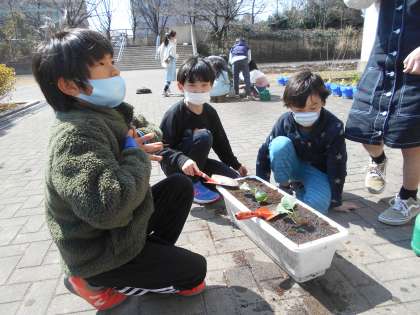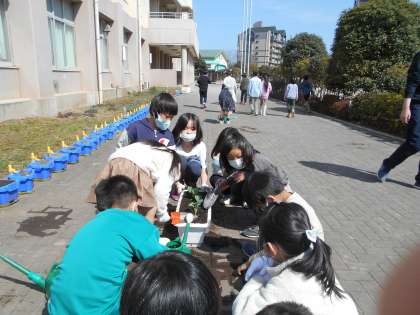 キャベツ 公開日 2022/03/09 更新日 2022/03/09 今日の出来事 畑の周りでは2年2組がキャベツの苗を植えています。来年の理科で使うものです。さて大きく育ってくれるでしょうか? 校長より 授業 研究・研修 生活 行事 給食