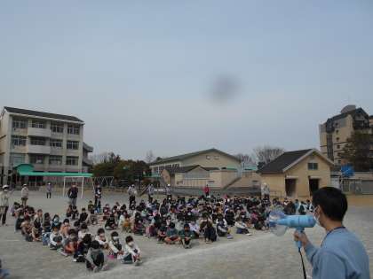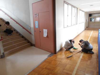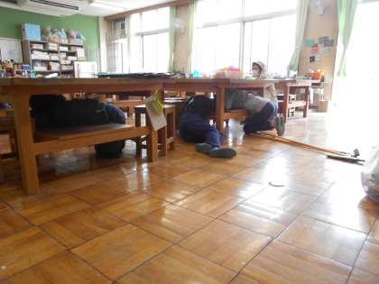 お昼の掃除の時間に訓練がありました。教室と違って、今自分がいる場所に応じて安全に身を守る行動をとらなければなりません。