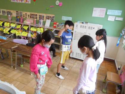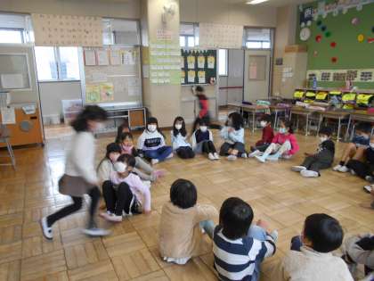 もうすぐ1年生も終わりです。クラスのみんなとの楽しい思い出を作るため、みんなで考えた「ハッピーランド」という遊びをしました。ミッションをクリアしながらゴールをめざすゲームです。ジャンケンに勝ち抜かないとスタートに戻されたり、くじ引きやサイコロでミッションを選ばされたり。子どもたちが考えたミッションは難易度も色々で選べるのです。感心しました。最後は、ハンカチ落としに熱狂していました。まだまだ可愛い1年生です。「あ〜楽しかった!」と大満足の笑顔になりました。